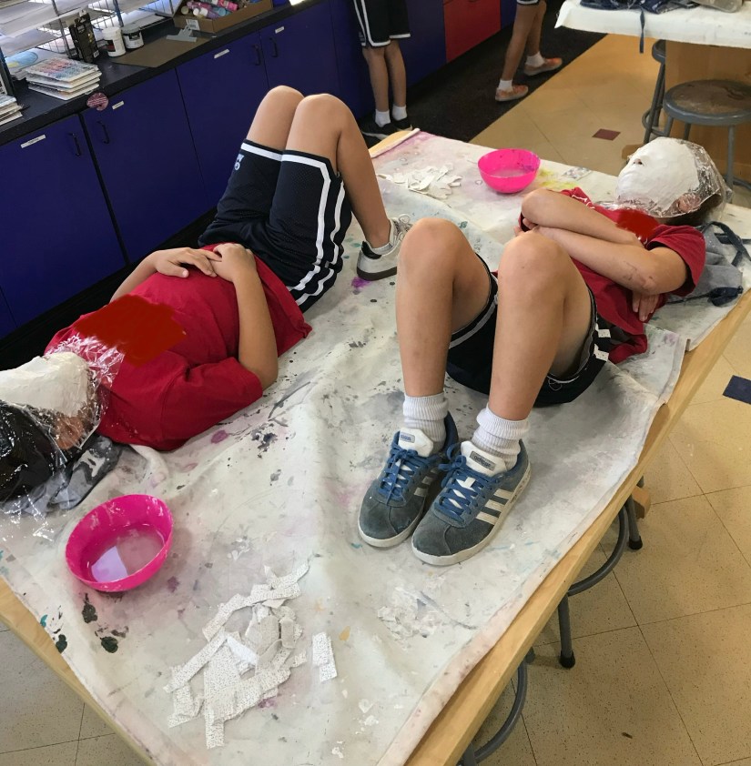 When creating masks, this project can be adapted to different themes and grade levels. I found that third grade is the best year to start. Anything younger can be done, but will require a lot of assistance so I would suggest one on one parent involvement if you choose to do so. As you can see, plaster will be applied to the students with the use of a partner. Third grade becomes the year students are more able to complete this with minimal assistance. Having parent assistance will help immensely, but becomes less necessary as the students get older.