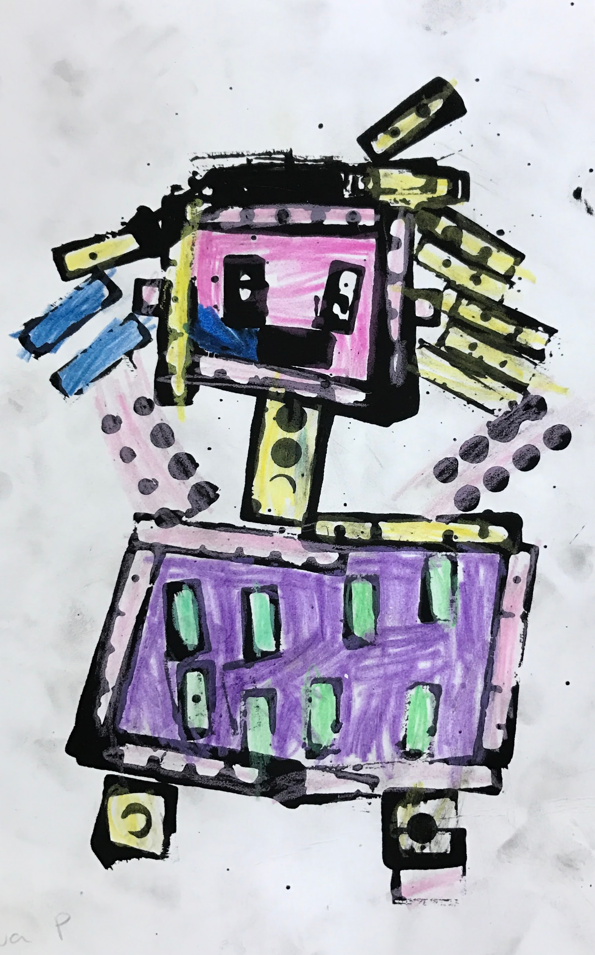 - When the students return for the next class, have them color their robots using the color materials suggested. The examples used colored pencils, but watercolor is a good choice as well. I really like Artist Loft pan set. It comes in many colors and does not get sticky or run out quickly like I find happens with other sets.