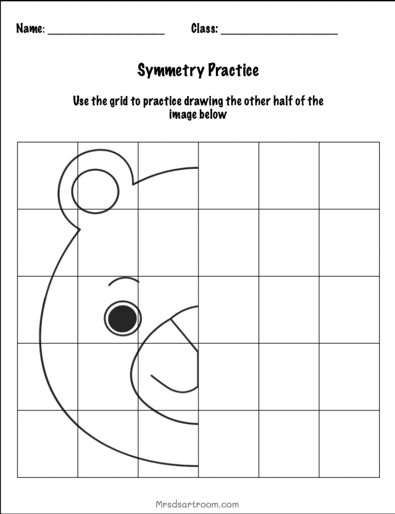 To get the class started with symmetrical lines kinesthetically, I have provided a symmetry practice worksheet. This can work with all ages, but recommend second grade and up. I have found this is also helpful for older students too because it helps them mentally understand symmetry through practice instead of just looking and discussing examples. You can also download this resource or other resources from my Teachers Pay Teachers page