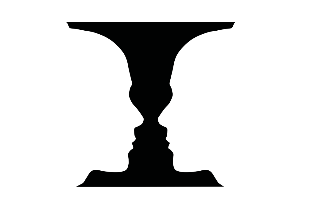 When I first introduce the lesson, I always like to start off with the example above of the face/vase asking students what they see first when. You will get a mix between some who see the faces first and others who see the vase, but that is why this is a good example to use. Those who see the vase see the white as the positive space and those who see the vase see the black as the positive space. The black area is not necessarily always the positive space or vice versa. What makes space positive is what the area of interest is in the artwork and that can change depending on where you focus. Below are a few more examples of how artists play with negative and positive space.
