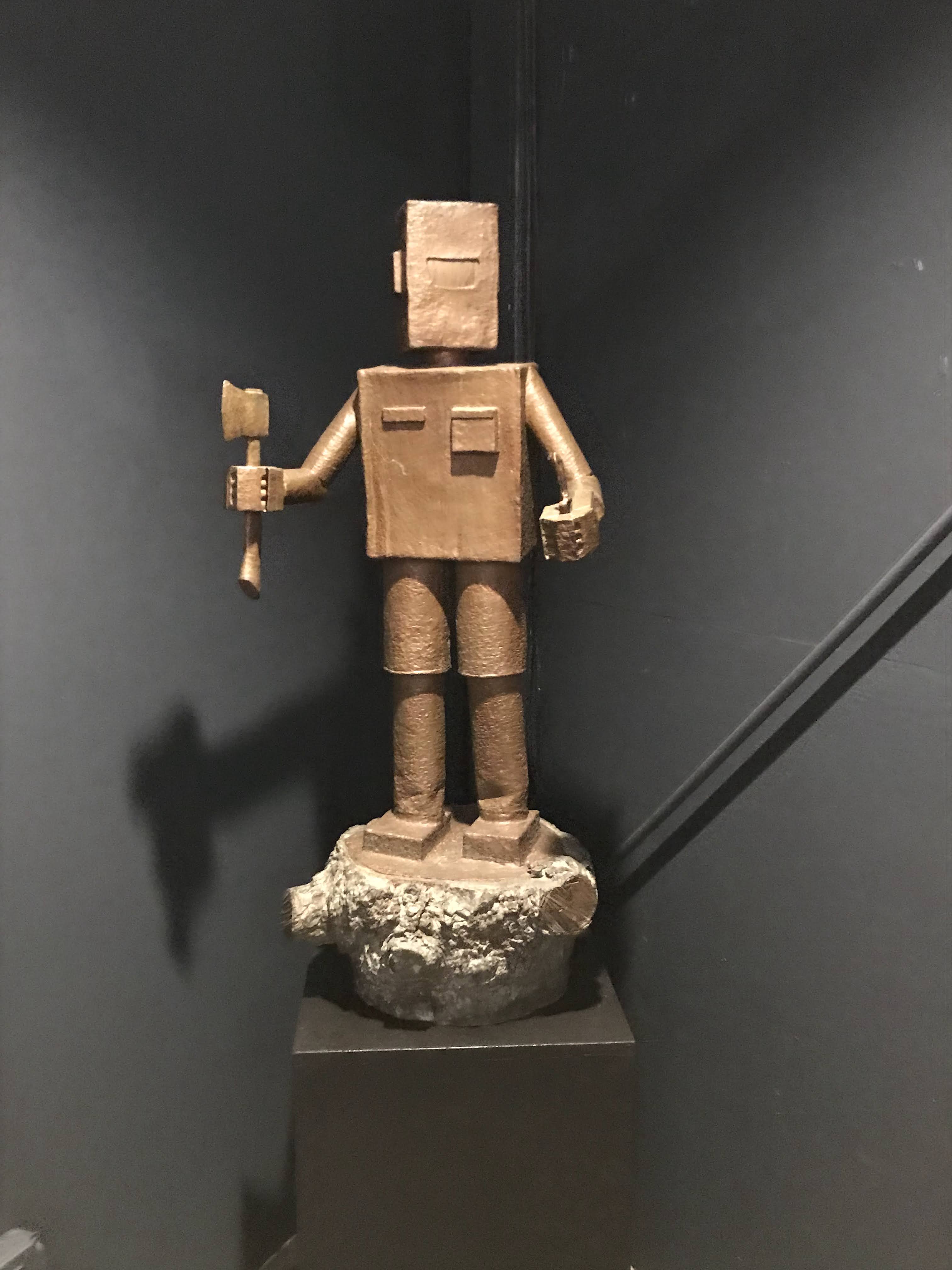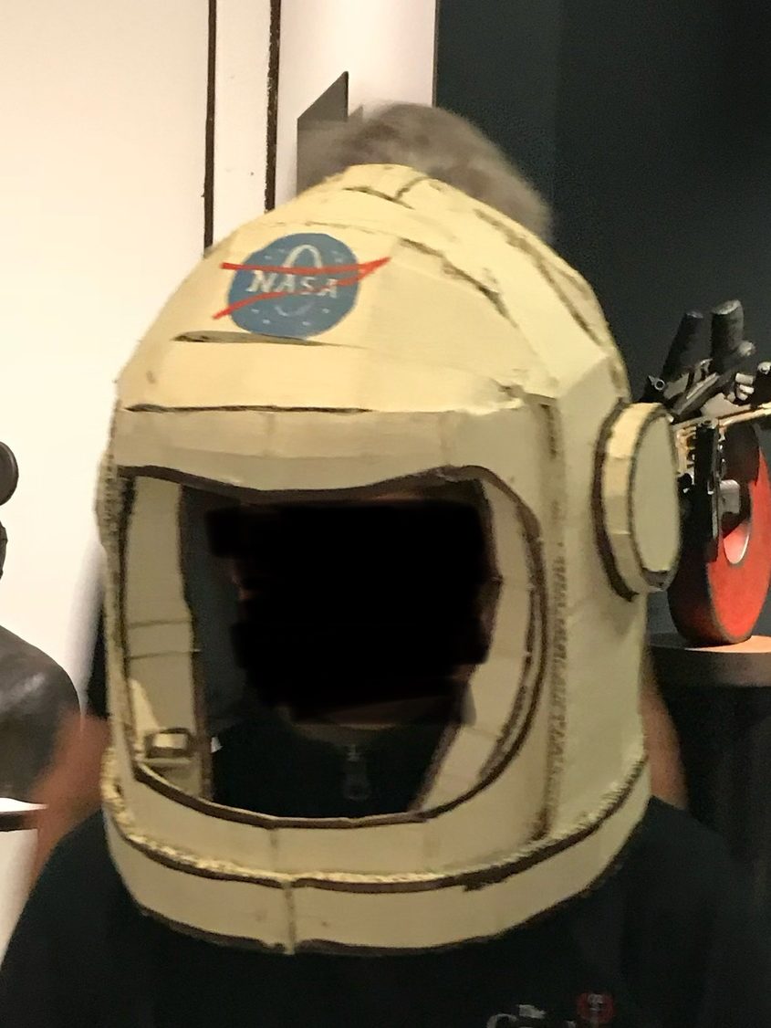 One specific exhibit the student’s loved was that of sculptor Bill Barminski. This exhibit was interactive and included a living room made of cardboard where the students were able to sit on a cardboard couch and pick up the pieces that lay around. One student even put on an astronaut helmet. I tried my best to let the students dictate the time spent in each exhibit and they spent a good amount of time in this one since it was fun and interesting and the artist happen to be there which gave the experience even more of a positive effect of my students. This gave me the idea for the students to make their own cardboard sculptures for an art project helping connect the field trip and an exhibit they found interesting into our classroom.