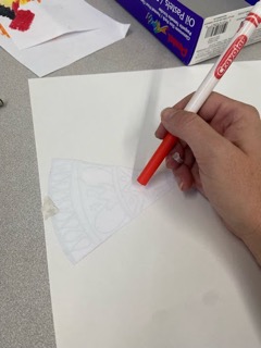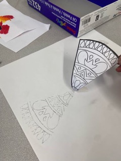 - Once the design is complete, trace it with a 6B pencil. This will allow the students to transfer their design onto the thicker paper.