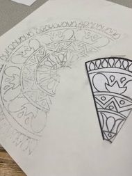- Remove the paper to reveal the transferee image. Repeat this in order to create the circle. Retrace the design with the 6B pencil when needed. It is ok if the designs are light because they will be tracing them with thin sharpie.