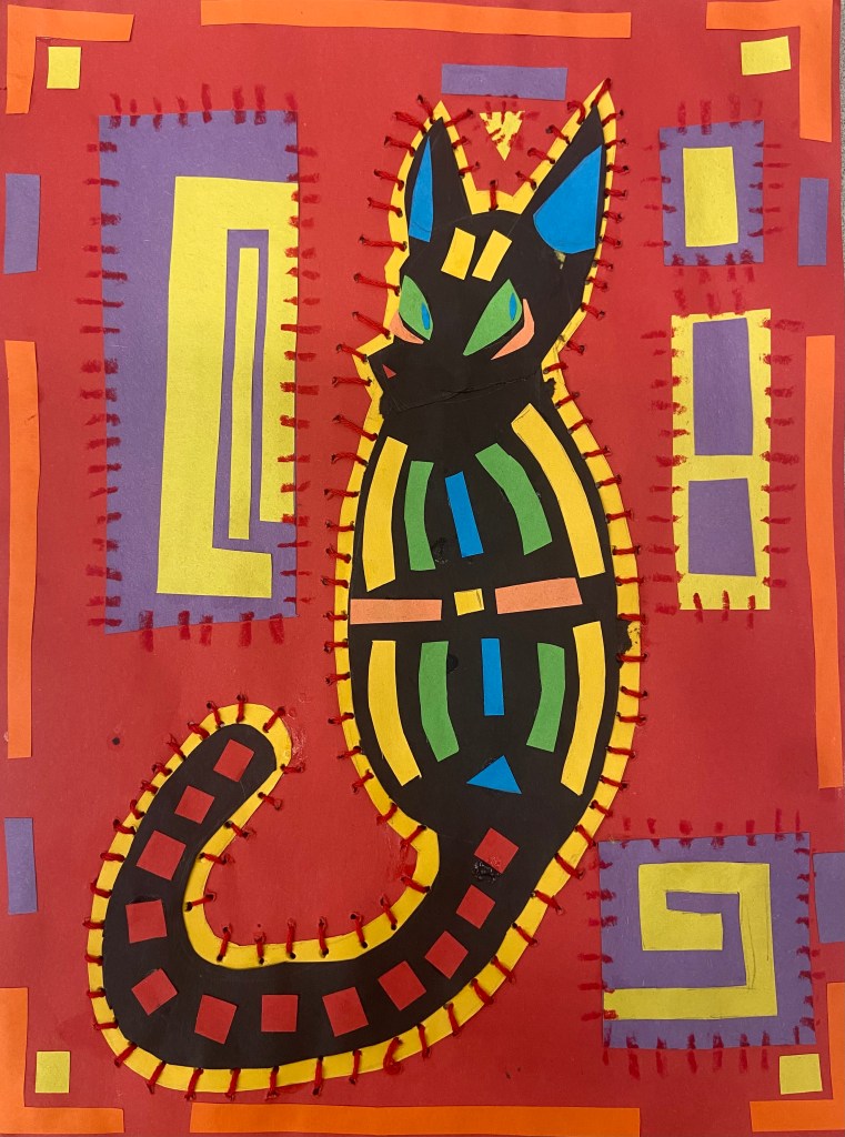 My classes have completed molas in several ways. The easiest way is to use construction paper. However, it has also been done using thread for a texture aspect of the project. My long term substitute also had some students use only fabric for a challenge assignment. Whatever option you choose based on budget, accessibility, or student abilities will still produce work inspired by the molas.