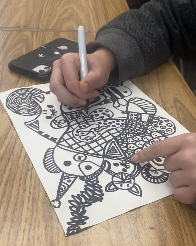 - I like to do a small demonstration because there is actually a not so great way to complete the doodle part. If the students doodle very quickly, they will get a lot of small sections and their lines will skip giving them incomplete circles. Students want to be intentional with their doodle, making big, sweeping circles. It is also not continuous, so they can pick up their pencil and add sections as they see fit.