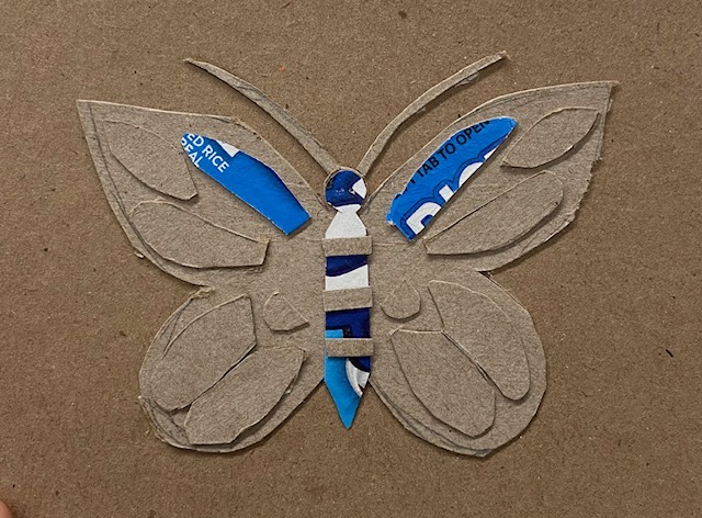 This was one of my favorite lessons I completed during my first year teaching printmaking. The process was rather easy for the students to complete and the results were overall successful. After a few difficult activities and “failures” with project executions, it was great to have a project that came out well. The best part of the project is that no ink is involved. There is still a level of messiness with cutting cardboard and gluing, but not nearly as much with the printing ink, which is a win for me.
