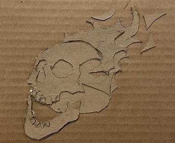 - Do not use regular cardboard. In my student example below of the skull, you can see lines that was created from the regular cardboard used for the printing plate. Chipboard works best for the plate for it doesn’t create those lines and reduces the thickness of the plate making it easier when running it through the press