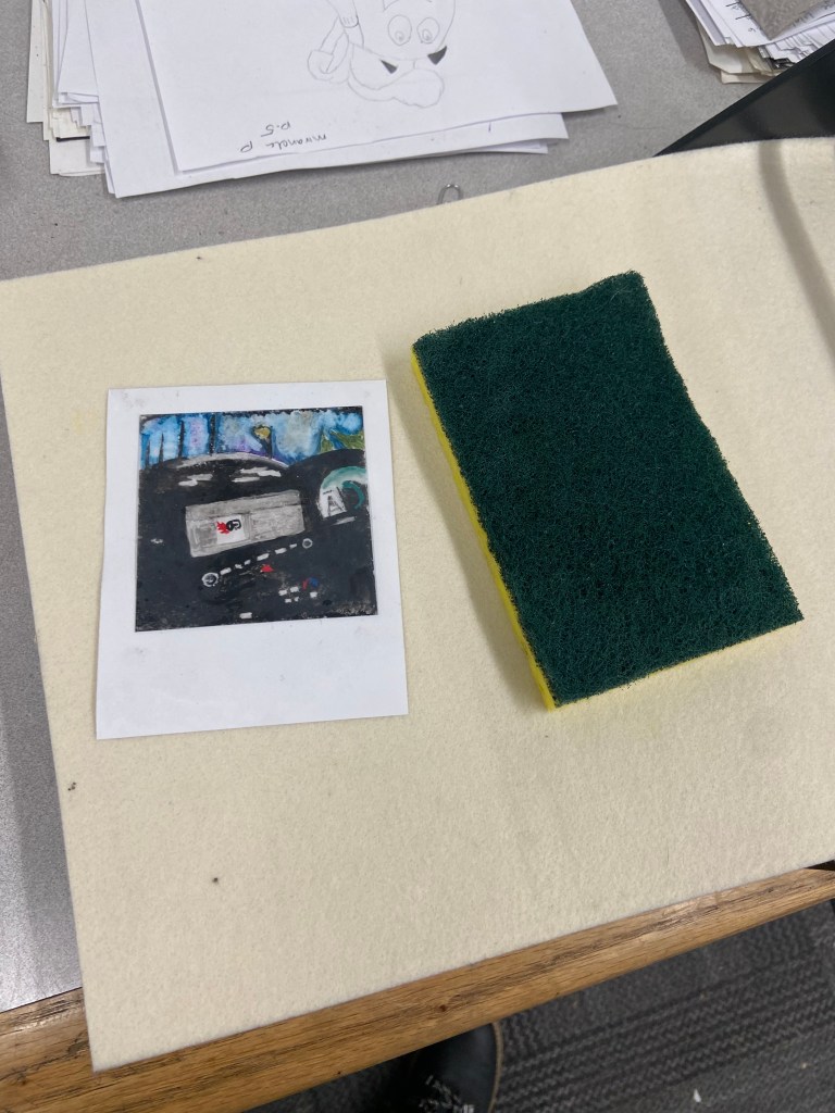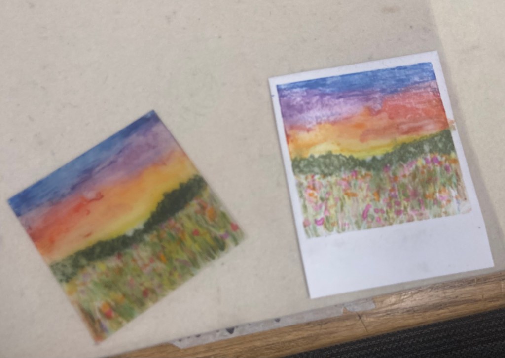 While on Instagram, I came across a teacher post of a lesson where students painted polaroids and thought they came out really cool. I took that idea for inspiration for my next printmaking project where students created snapshots of their life. We used a mono printing technique of water coloring on plexiglass and transferring the painted plates to paper, which I cut to the size of a Polaroid picture. The students were to create three plates. The subject of the plates are memories/dreams; one from their past, one from their present, and a future hope or dream that they have.