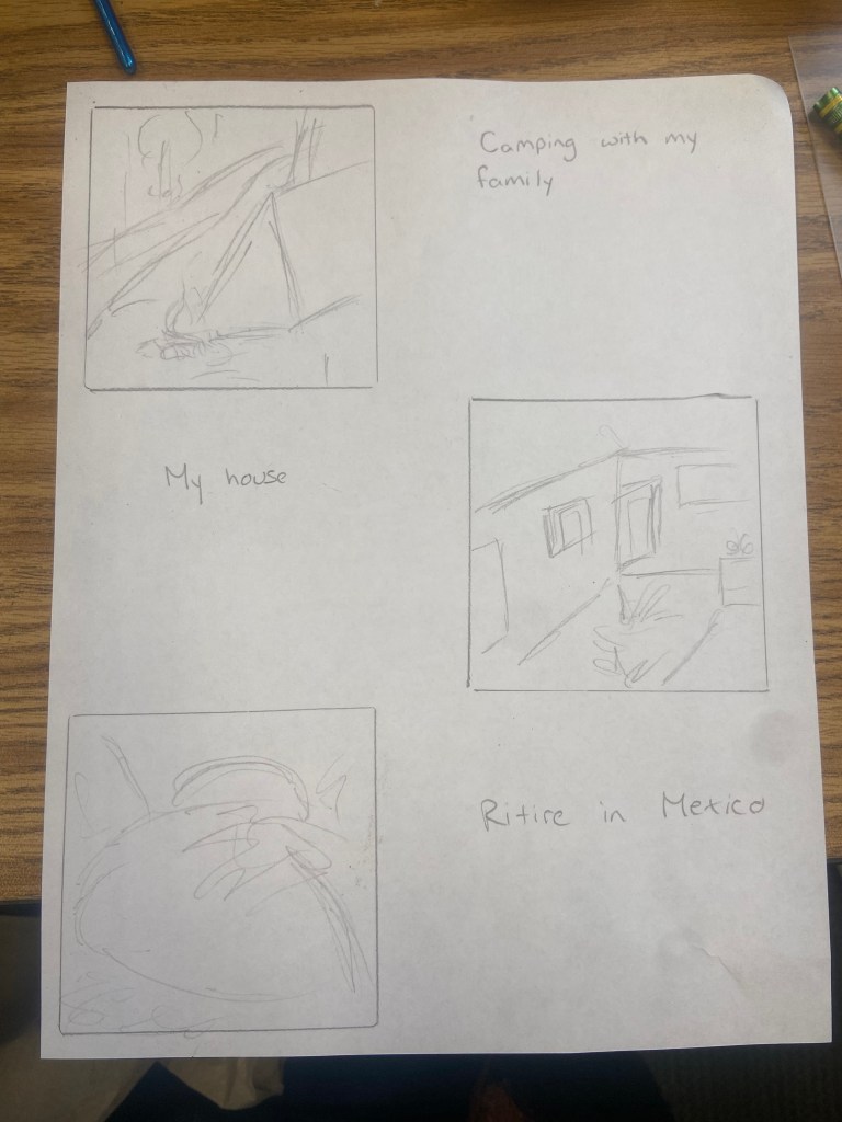 - Introduce the lesson with the rough draft and the subject of the art lesson. I completed an example of the rough draft to help the students understand my expectations.